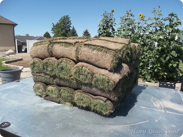 We actually planted the rest of our yard with seed, but figured since this was a considerably smaller area we would go for sod here and just be done with it. After checking around we found it was going to cost about $250 for the sod which was a little more than we wanted to spend considering our budget for the entire project was just $350. Kasey started checking KSL (our local online classifieds) for a better price and finally found some in our area for 100 bucks! At less than half of what we would have paid anywhere else, we decided to go for it.